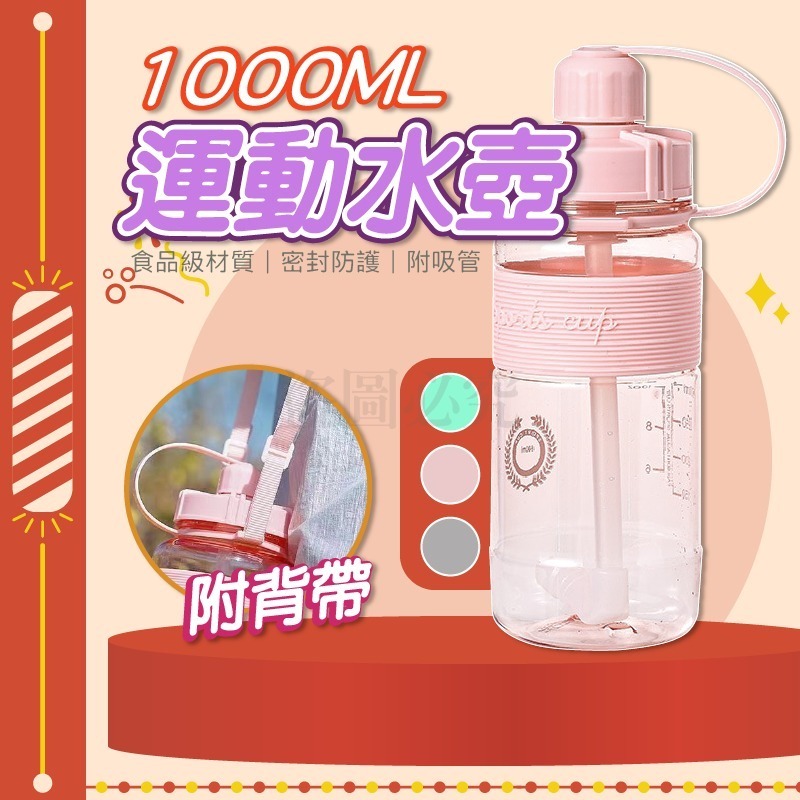 • 粉色 運動水壺1000ml(附背帶吸管) 粉色 運動水壺1000ml(附背帶吸管)