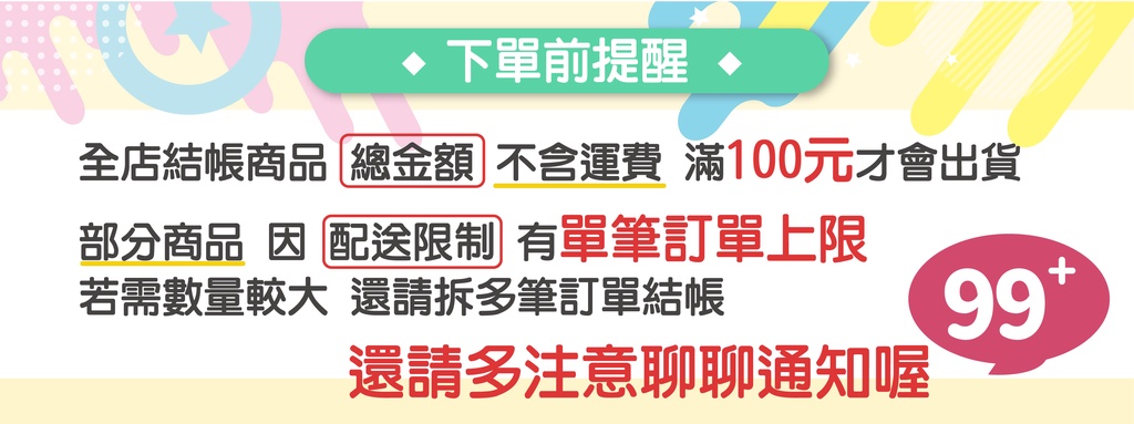 🚚🚚訂單商品 結帳【商品金額】滿100元以上就可出貨喔 (商品滿100元以上=可出貨)🚚🚚