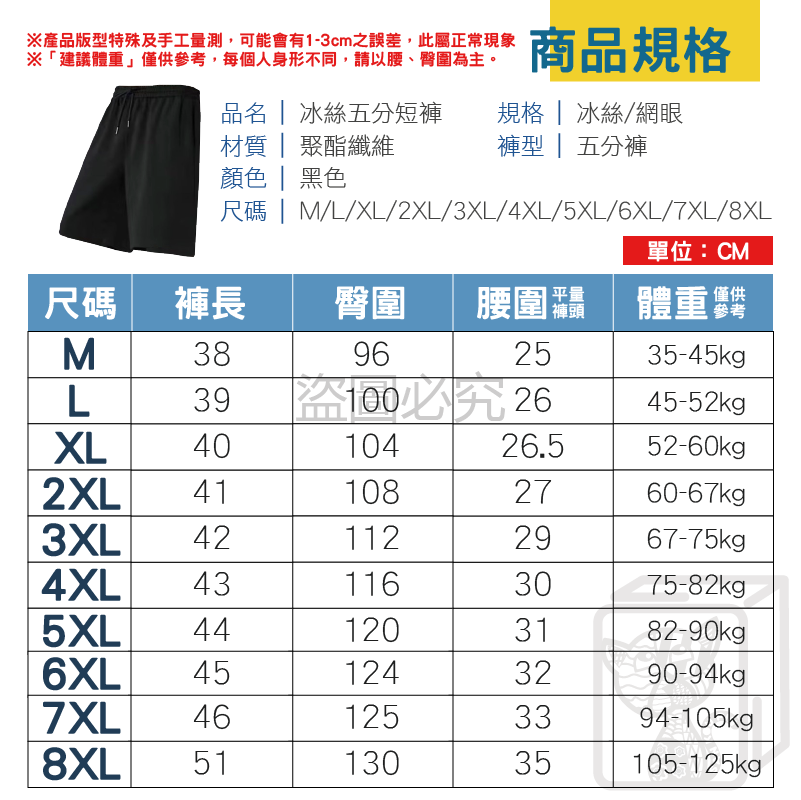 名稱:冰絲五分短褲