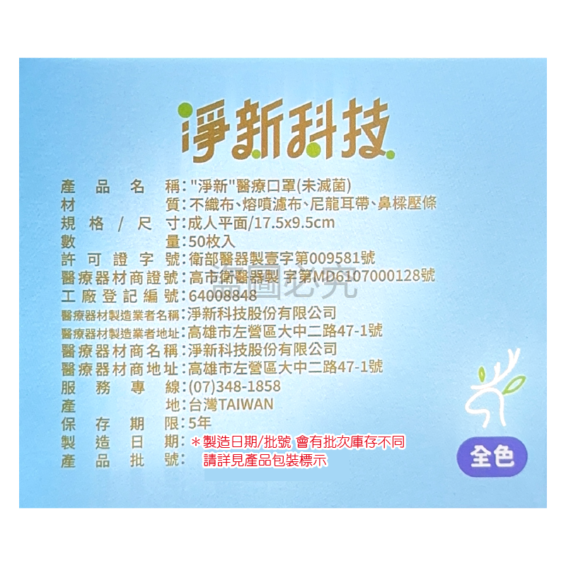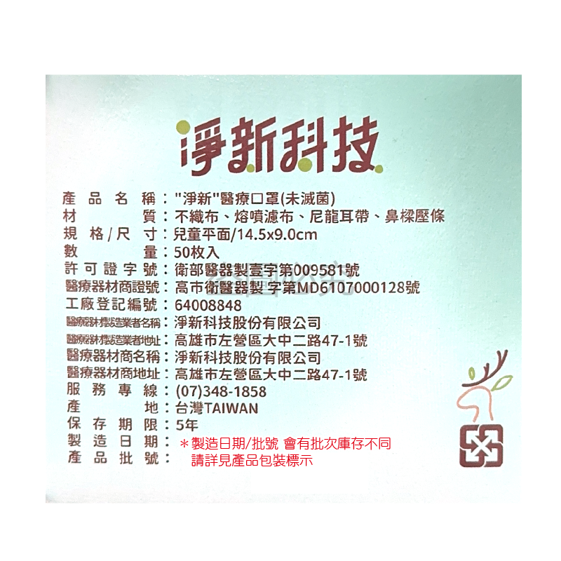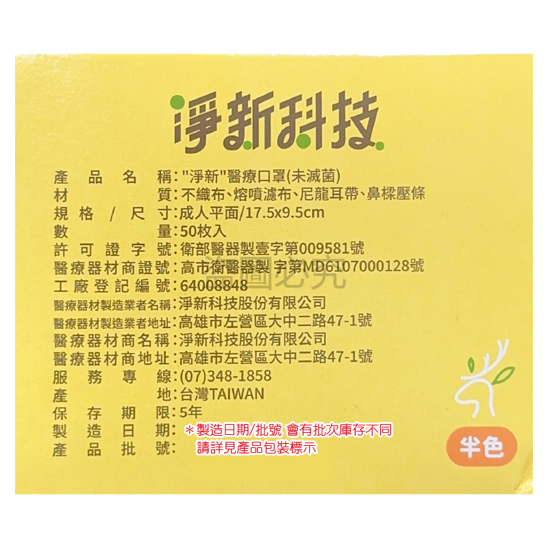 產品名稱:"淨新"醫療口罩 (未滅菌)