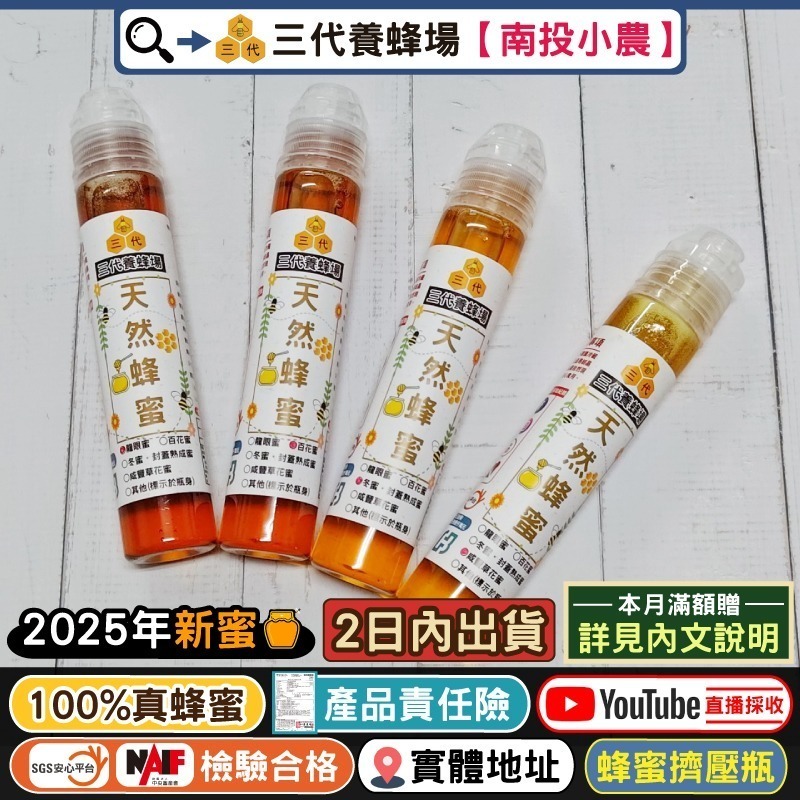 【三代養蜂場】2025年➤100克100%台灣蜂蜜.擠壓瓶│⭐️隔日出貨⭐️蜂蜜多項自主檢驗│龍眼蜜.荔枝蜜.百花蜜│