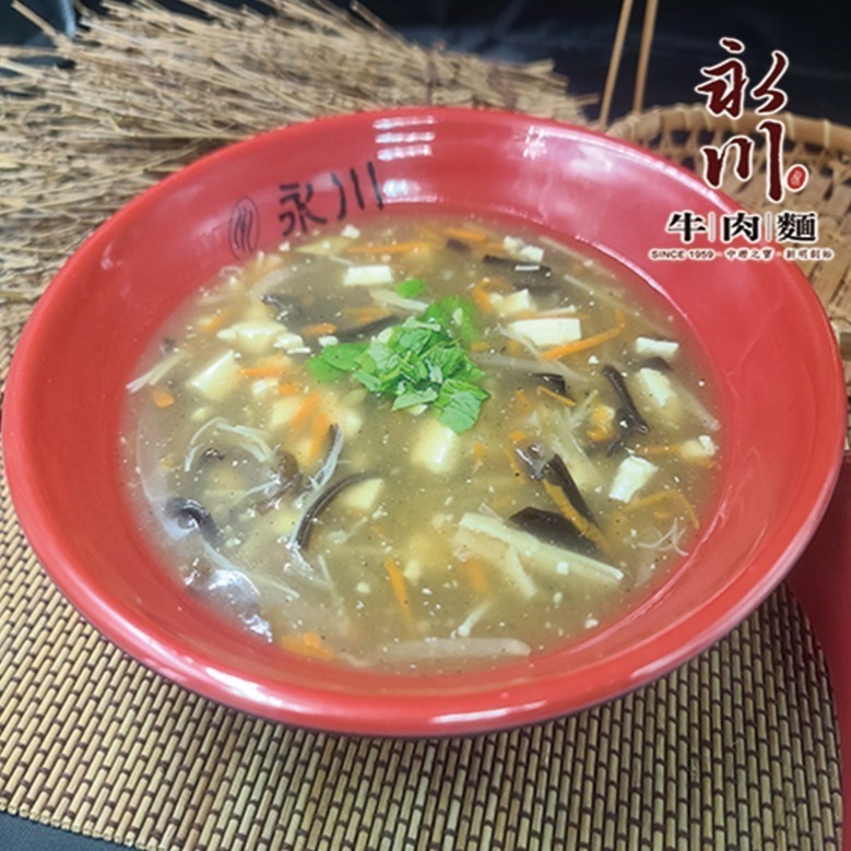 ⭕酸辣湯:水、豆腐、胡蘿蔔、黑木耳、金針菇、榨菜、鹽、白胡椒、大豆沙拉油、L-麩酸鈉