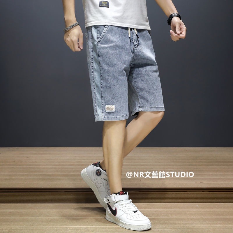 面料/材質: 牛仔布/棉 成分含量: 51%(含)—70%(含) 版型: 寬鬆 腰型: 中腰 褲長: 五分褲 工藝: 砂洗 流行元素: 拼接,徽章,腰部抽繩 風格: 韓版 適用年齡: 青年(18-25週歲)