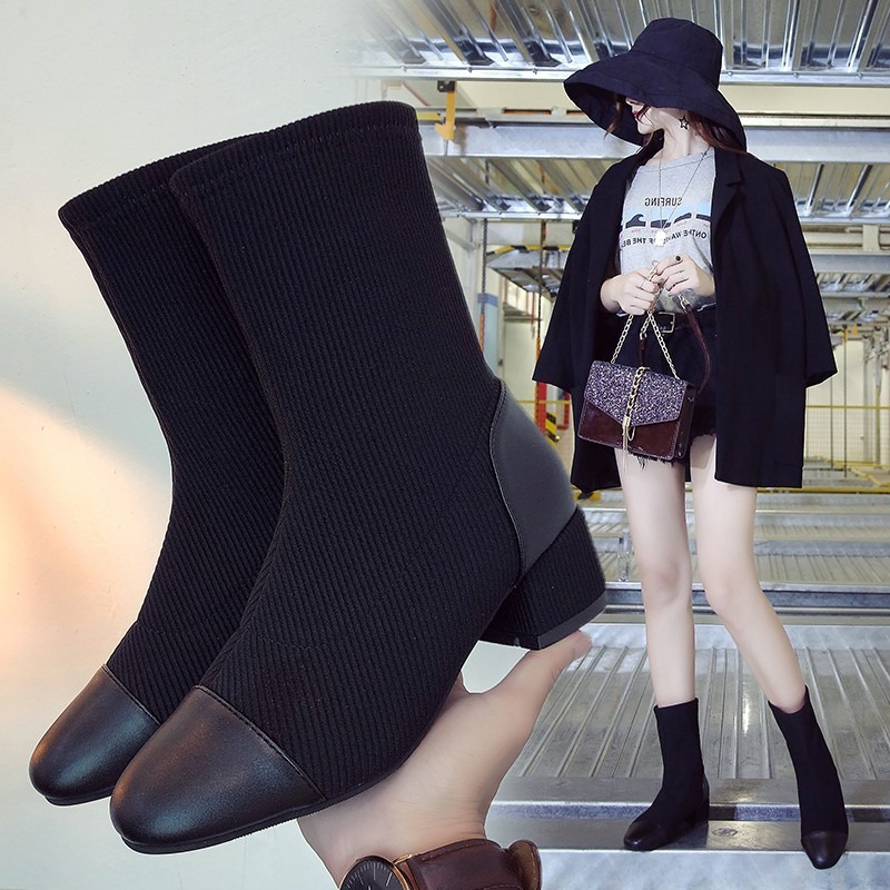 鞋 面:彈力飛織+超纖 內 裏:彈力飛織 鞋 底:橡膠防滑大底 前跟高:1cm,後跟高:4.5cm 筒 高:19cm 尺 碼:36,37,38,39,40 顏 色:黑色