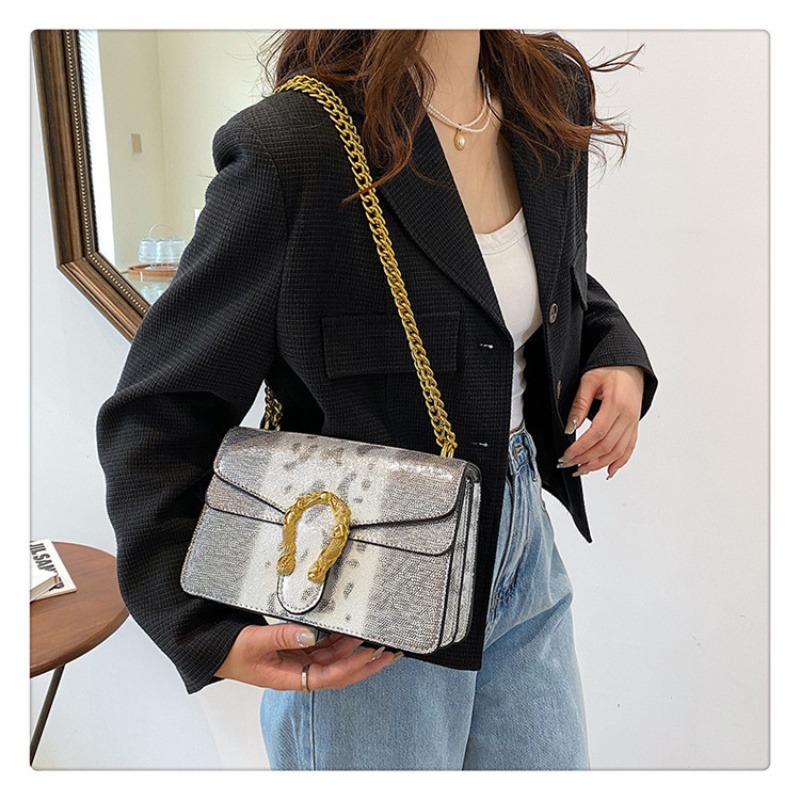 顏色:綠色,粉紅色,銀色 材質:PU 箱包大小:22cm*15cm*9cm 開蓋方式:鎖釦 圖案:豹紋 加工方式:漆面 硬度:中偏硬 提拎部件:軟把 外袋種類:立體袋 有無夾層:有 肩帶根數:單根 適用場景:日常搭配