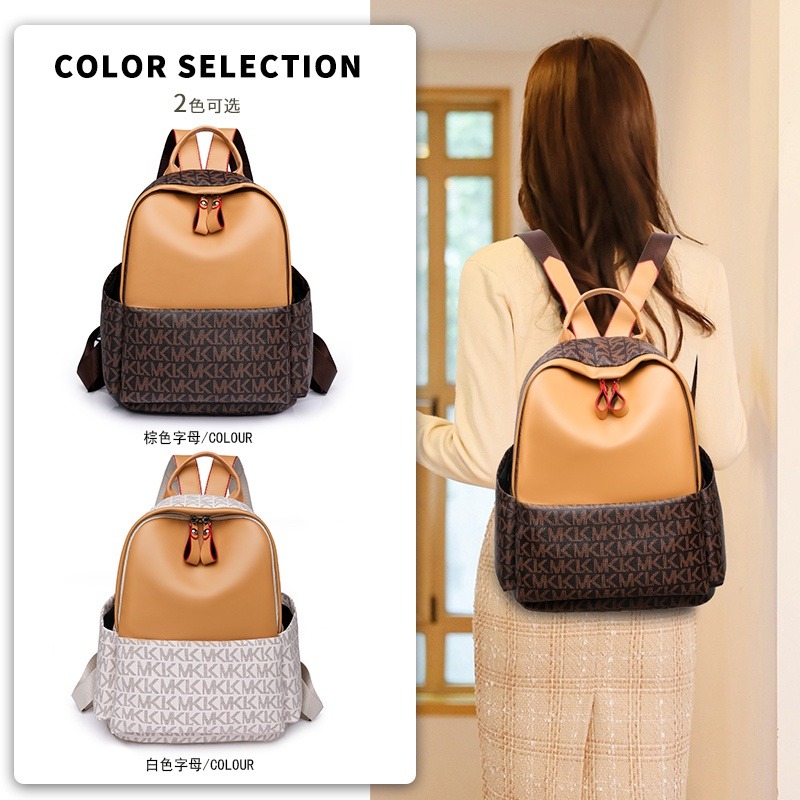 復古女士背包 字母手提背包 帶側袋 多扣拉鍊大容量後背包女 全皮防水 旅行包 通勤包包 出差旅行包背包