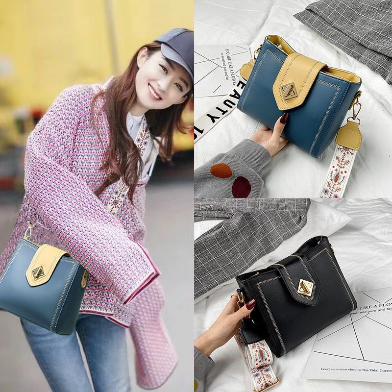 【名稱】:高級感撞色包包 【尺寸】:長20*寬10.5*高17cm 【材質】:PU 【風格】:日韓 【箱包款式】:水桶包 【開蓋方式】:鎖釦