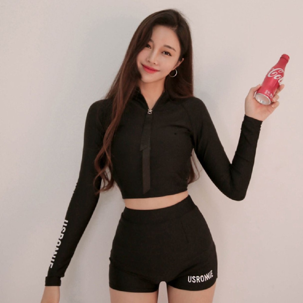 #韓國新款 #簡約時尚泳裝 #長袖防曬泳衣 #高腰遮肚顯瘦 #沙灘海邊渡假 #浮潛泡湯 #素色超好看