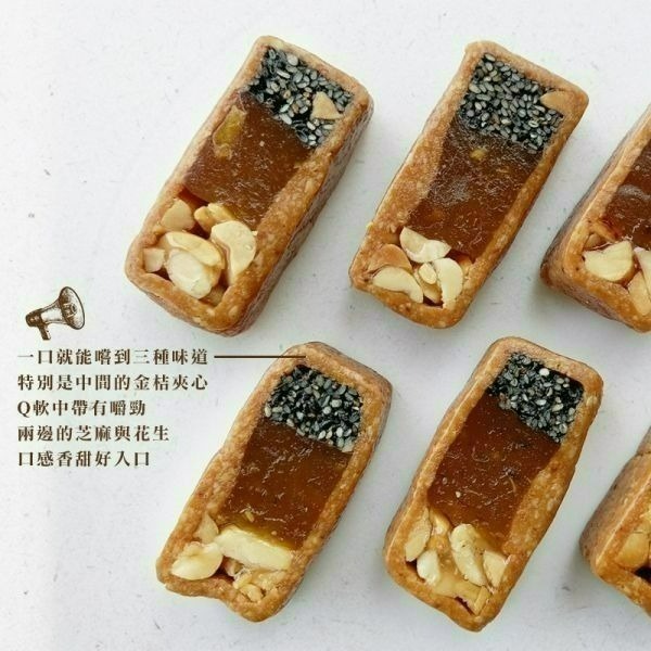 成分:花生仁.黑芝麻.花生粉.地瓜.麥芽糖.金桔醬