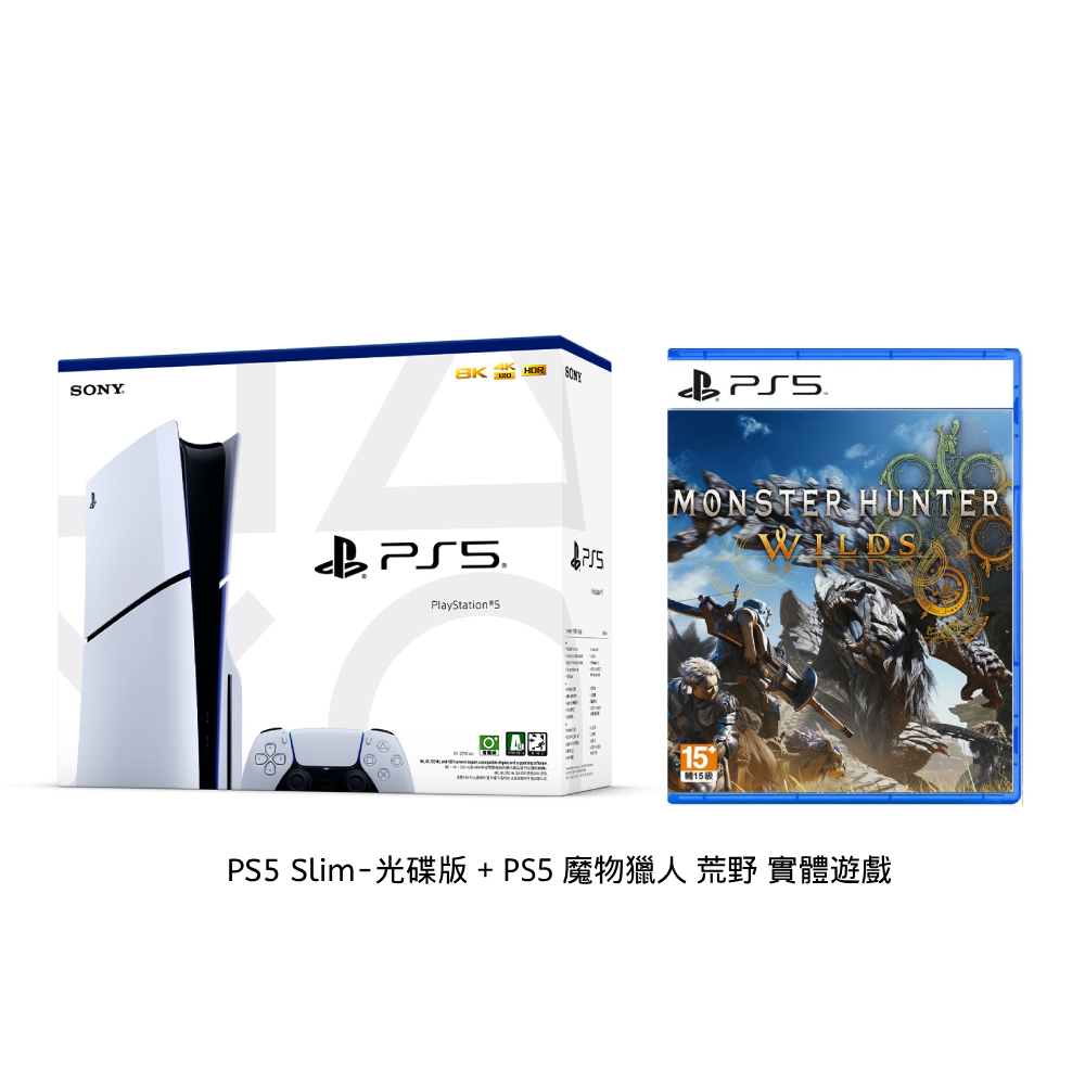 PS5 Slim 光碟版主機+PS5 魔物獵人 荒野 中文版 台灣公司貨