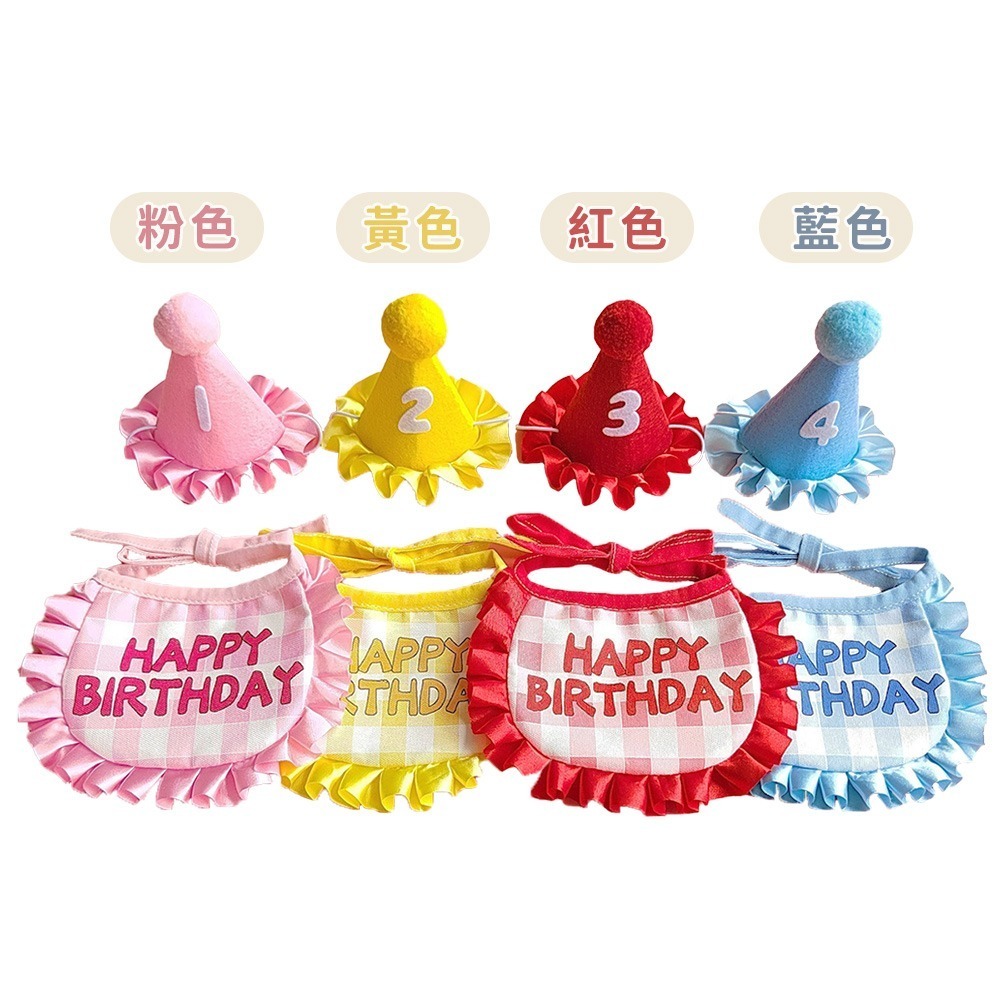 中文品名:O'Pretty 歐沛媞 Petsall寵物生日帽+圍兜+數字貼-多色可選