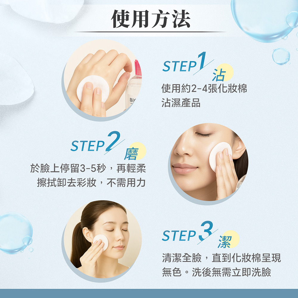 ★使用方式:取適量於化妝棉上,輕輕擦拭於臉部彩妝及髒污處,至臉部彩妝及髒污卸除,無須使用溫水洗淨。