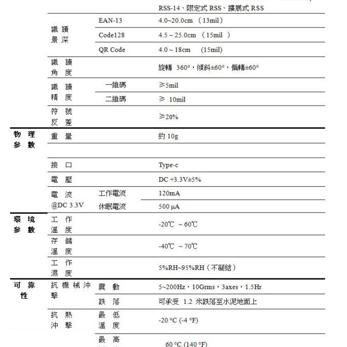 如各種照明環境下,較大的溫濕度範圍內,都可以提供優秀的掃碼識讀性能。