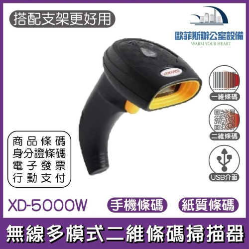 XD-5000W 台式風格無線多模式二維條碼掃描器 平台槍型兩用模式 可讀取發票QR CDOE顯示中文