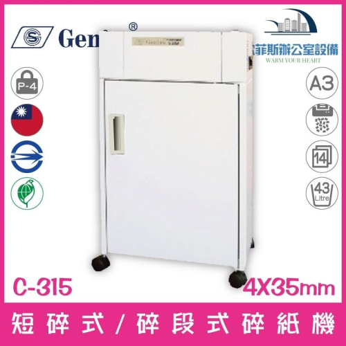 禾昌 GENIUS C-315 A3短碎式/碎段式電動碎紙機 14張43公升 歐菲斯 台北弘昌