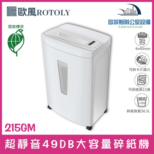 ROTOLY 歐風 215GM 15張/段碎 自動退紙 超靜音 多功能 大容量高效率 專業辦公室碎紙機