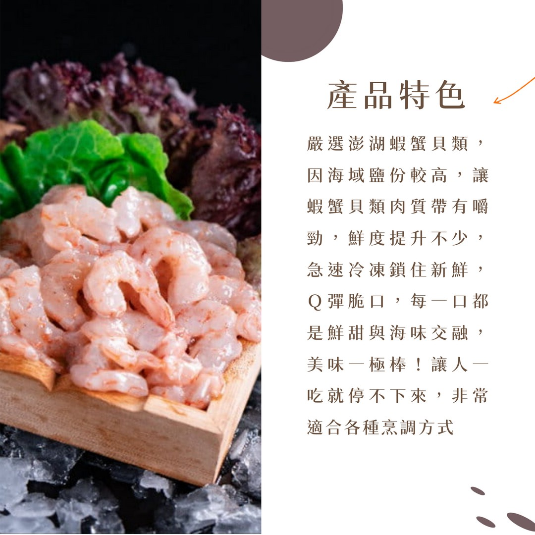 嚴選澎湖蝦蟹貝類,因海域鹽份較高,讓蝦蟹貝類肉質帶有嚼勁,鮮度提升不少,急速冷凍鎖住新鮮,Q彈脆口,每一口都是鮮甜與海味交融,美味一極棒! 讓人一吃就停不下來,非常適合各種烹調方式。 售價 $ 110