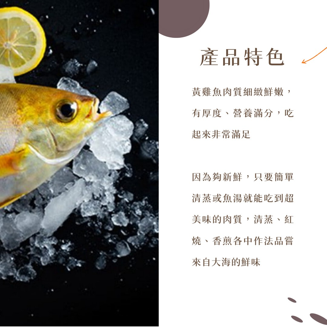 黃雞魚肉質細緻鮮嫩,有厚度、營養滿分,吃起來非常滿足。 因為夠新鮮,只要簡單清蒸或魚湯就能吃到超美味的肉質,清蒸、紅燒、香煎各中作法品嘗來自大海的鮮味。