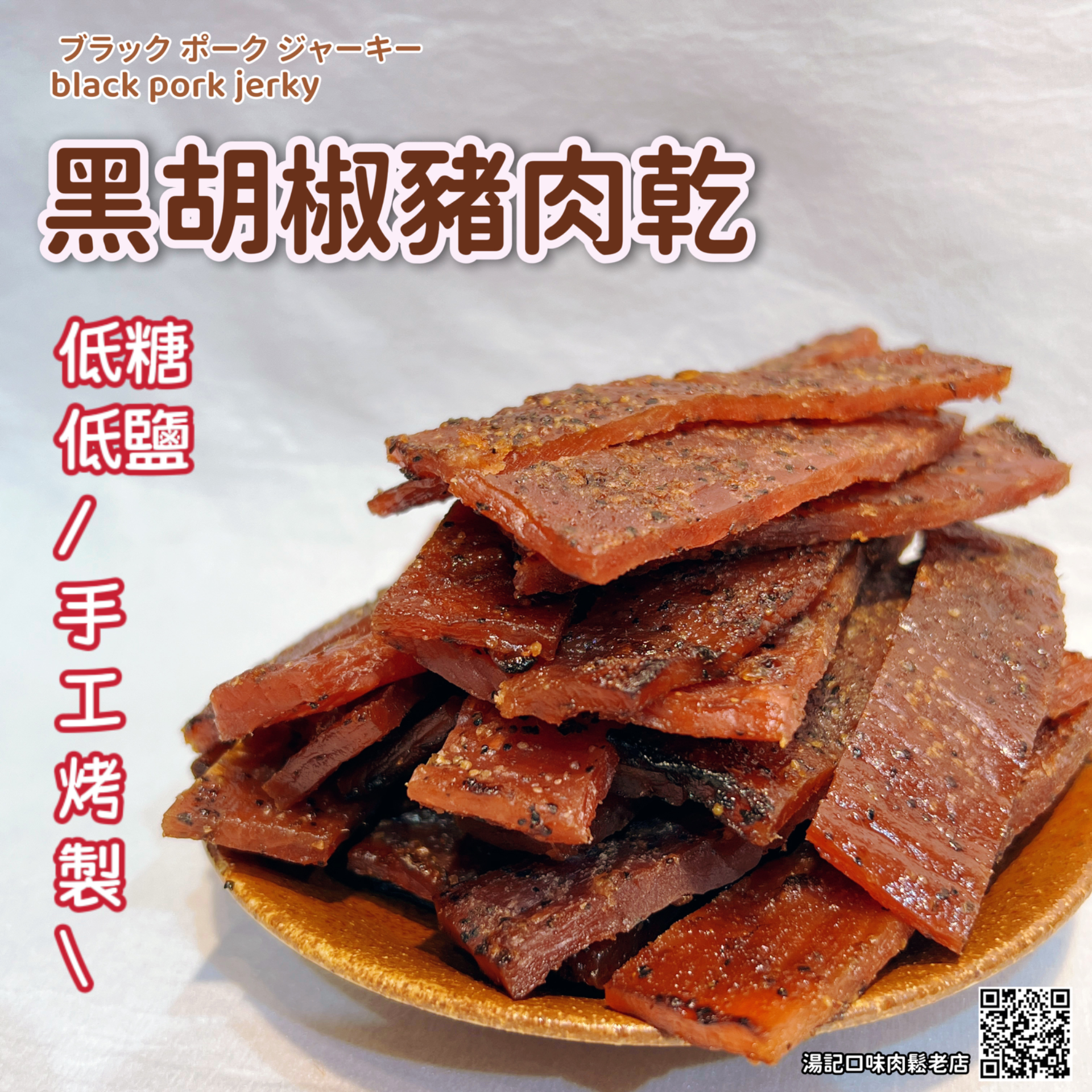 肉乾為【低糖、低鹽、無味精】純臺灣溫體黑豬肉製成,