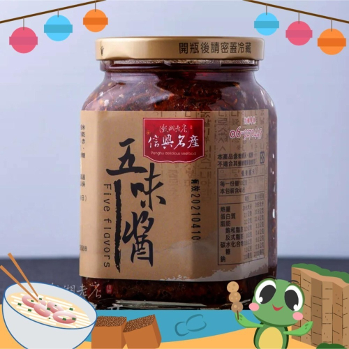 原料:干貝、小魚乾、小管、魷魚、蝦米、蔬菜油、辣椒、沙茶醬(沙拉油、魚乾、蒜頭、薑粉、椰子粉、蔥乾、芝麻、赤尾青、辣椒粉、食鹽、咖哩粉、胡椒)、辣椒油(黃豆油、辣椒、芝麻油)、沙糖、豆豉。