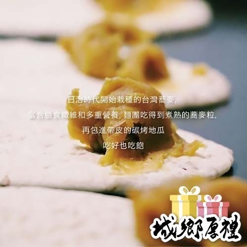 | 日治時代開始栽種的台灣蕎麥,富含膳食纖維和多重營養,麵團吃得到煮熟的蕎麥粒,再包進帶皮的碳烤地瓜吃好也吃飽 |