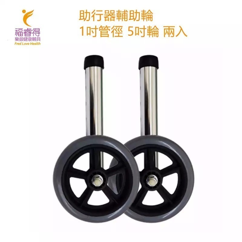 鋁合金|助行器輔助輪(1吋管徑.5吋輪.一組兩入)