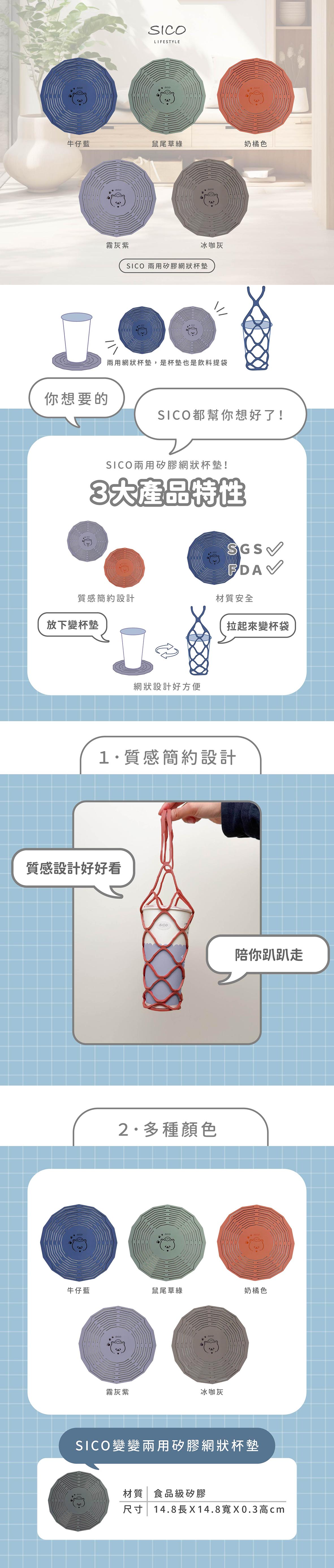 ◆ 多功能網狀杯墊,可變身:飲料提袋、隔熱墊、止滑墊等