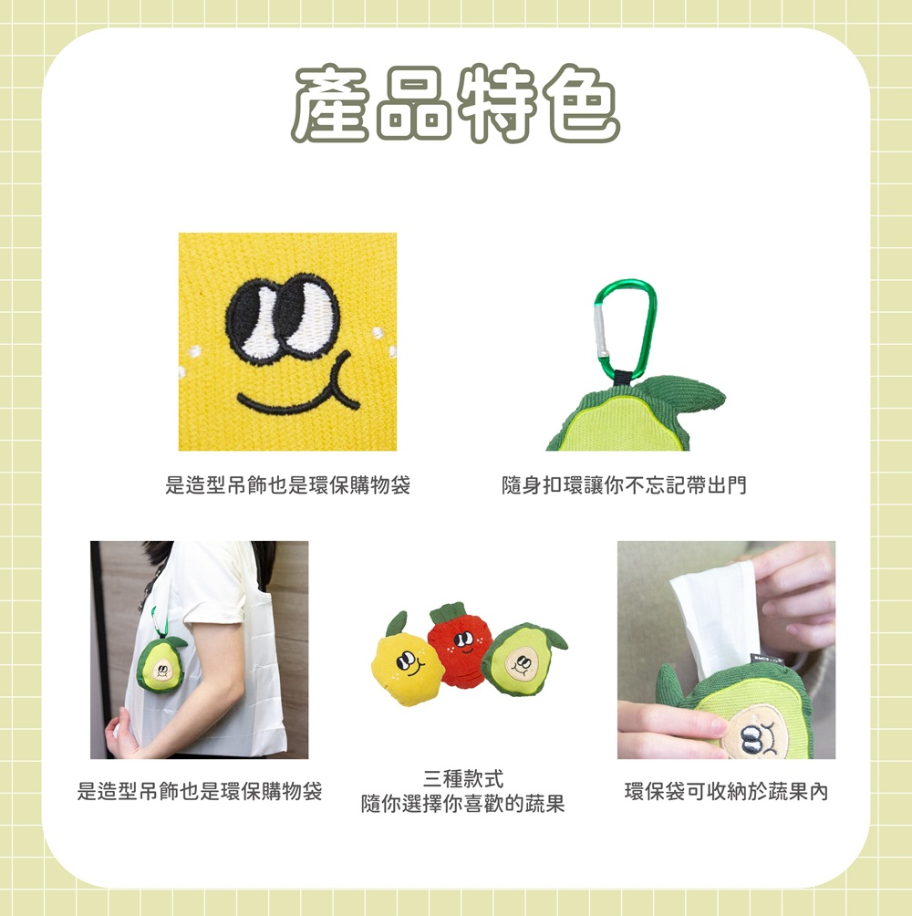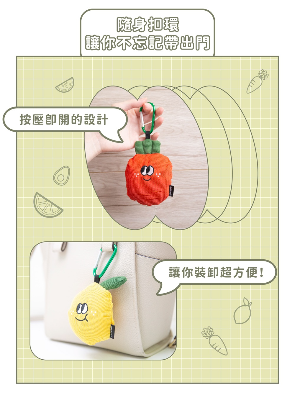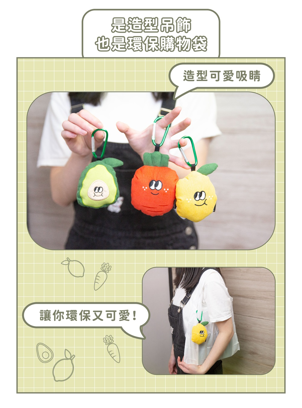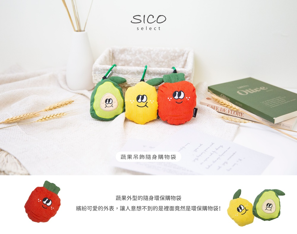 SICO 蘋果吊飾隨身購物袋 (綠酪梨/黃檸檬/紅蘿蔔)