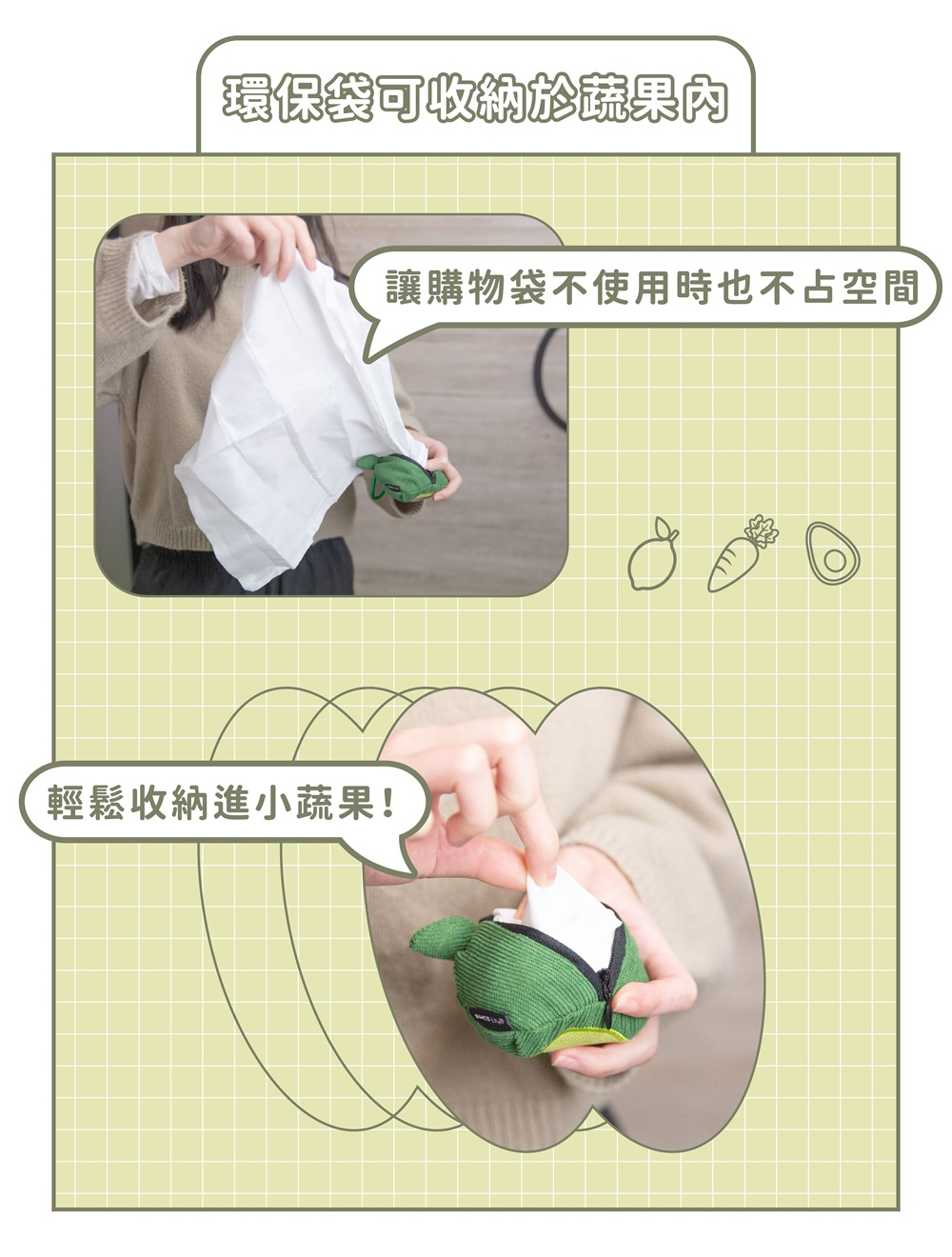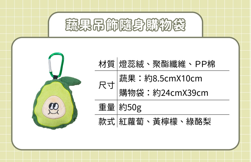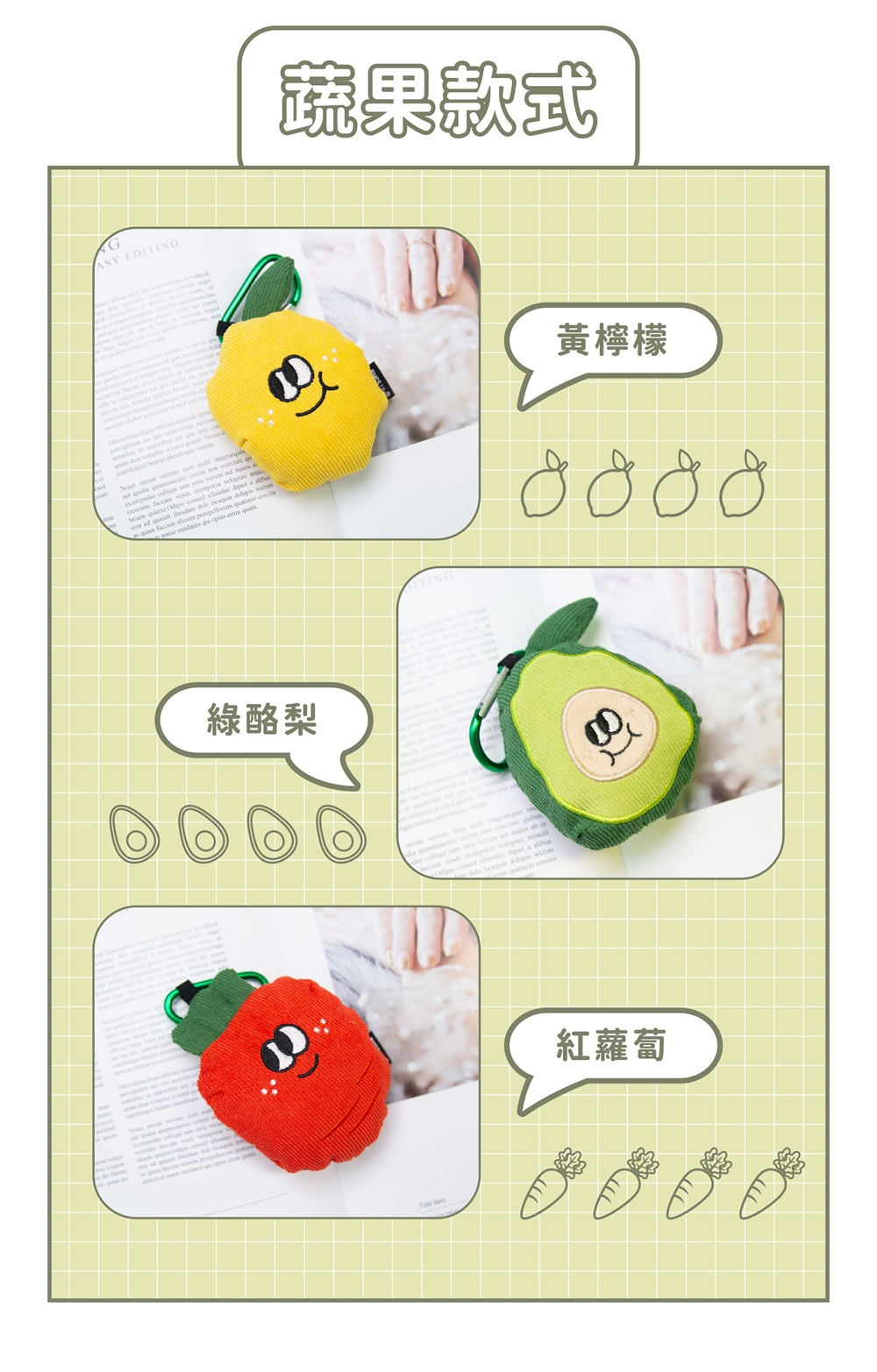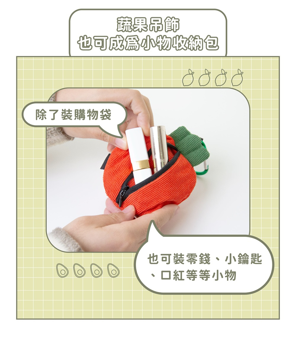 SICO 蘋果吊飾隨身購物袋 (綠酪梨/黃檸檬/紅蘿蔔)