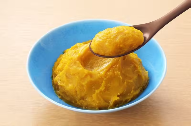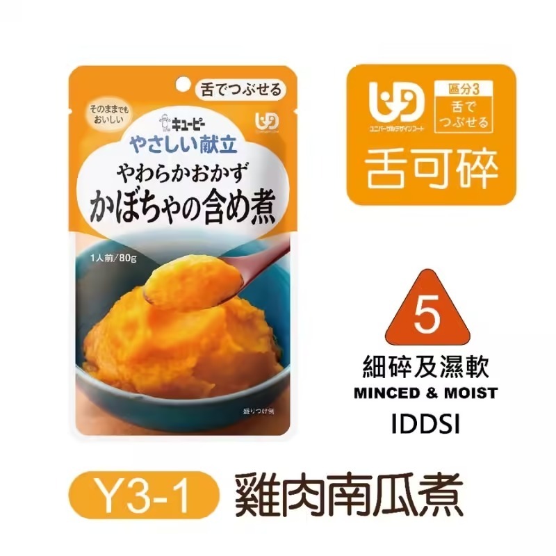 成份: 南瓜、加工雞肉(雞肉、乾燥蛋白、馬鈴薯泥、玉米澱粉、食鹽)、醬油、砂糖、米發酵調味料[米、葡萄糖、食鹽、酵母粉、葡萄、高果糖漿(玉米,馬鈴薯、紅薯)、麥芽糖、砂糖、食鹽、水]、鰹魚片萃取物、昆布萃取粉、羥丙基磷酸二澱粉、蛋殼鈣、調味劑(L-麩酸鈉、5’-次黃嘌呤核苷磷酸二鈉、5’-鳥嘌呤核苷磷酸二鈉、琥珀酸二鈉、琥珀酸)、開水