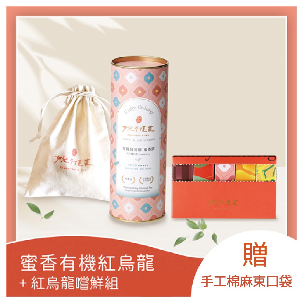 【優惠組】蜜香有機紅烏龍罐裝茶+五款風味嚐鮮組贈送手工棉麻束口袋|女兒不懂茶|紅烏龍茶|限量優惠組