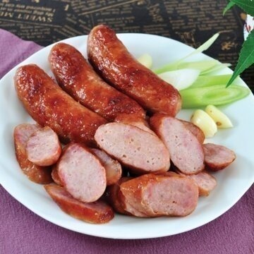 內 容 物:虱目魚肉60%、豬肉40%(台灣)、糖、鹽香辛料(甜味劑、甘草粉、肉類香味粉)、豬腸衣(荷蘭)。