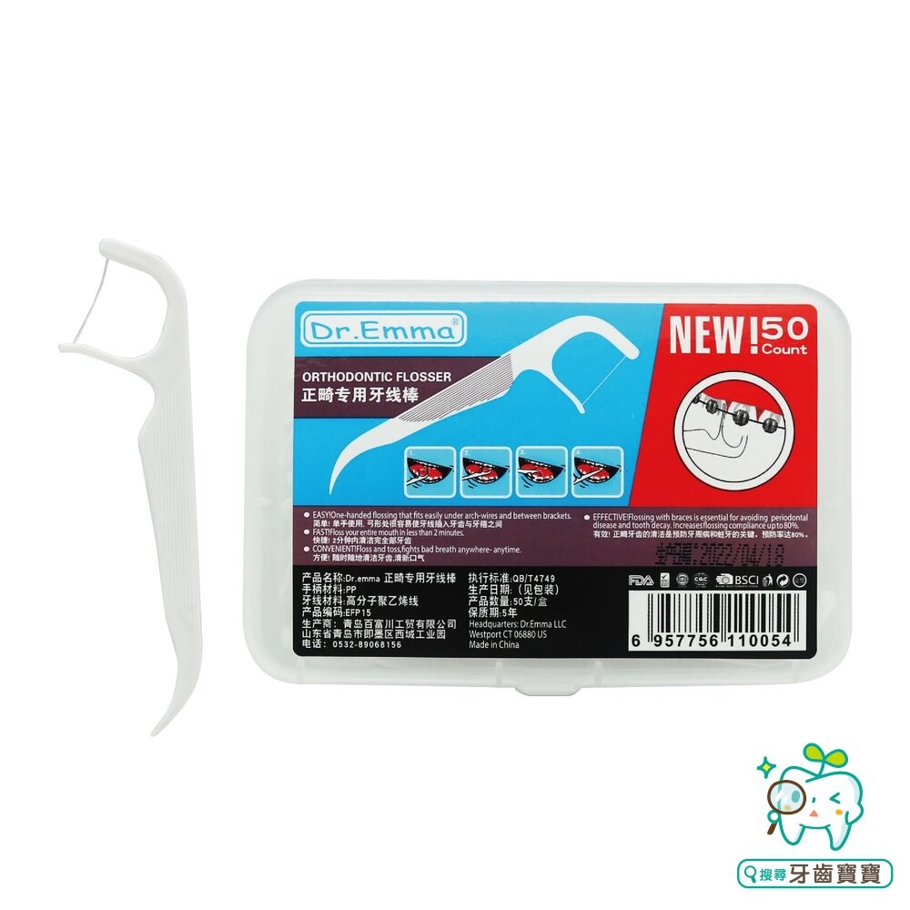 商品名稱:DR. EMMA 矯正牙線棒50支/盒裝 另有普雷克 鴨嘴獸 矯正牙線