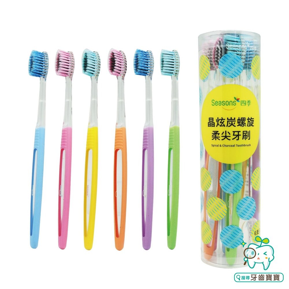 四季Seasons 超軟毛 晶炫炭螺旋柔尖牙刷 備長炭刷毛 螺旋刷毛 六支入盒裝