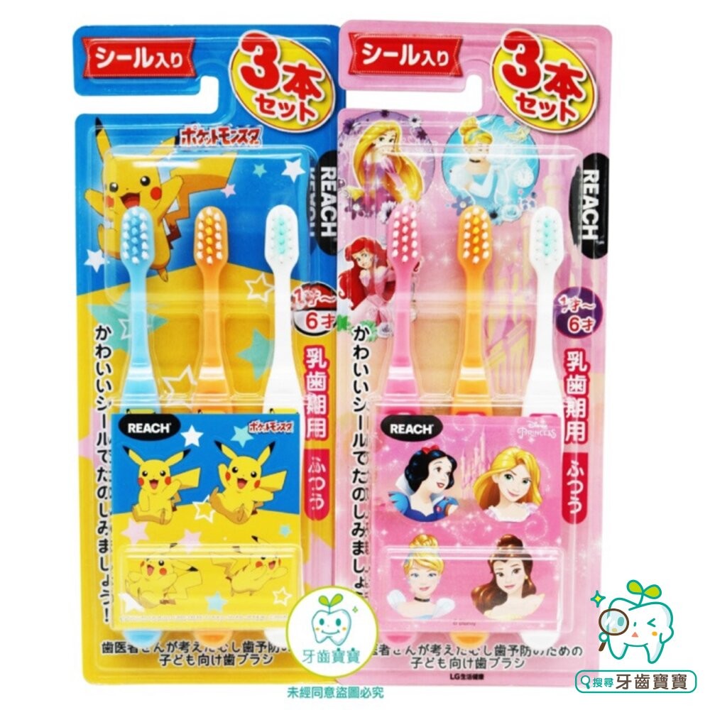 商品名稱:日本REACH 麗奇 迪士尼公主/皮卡丘寶可夢 幼童牙刷 1-6歲適用 三入組