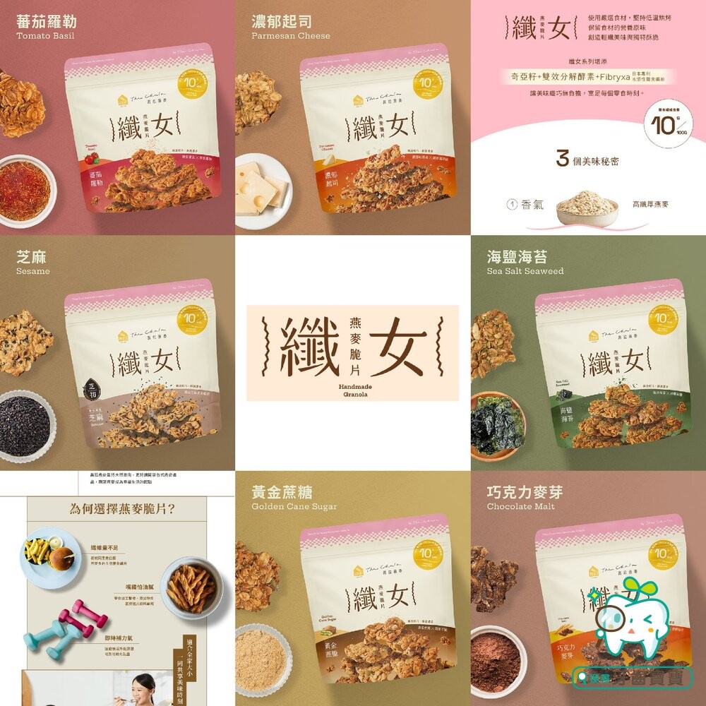 標籤:#The Chala, #纖女燕麥脆片, #黃金蔗糖, #海鹽海苔, #巧克力麥芽, #蕃茄羅勒, #濃郁起司