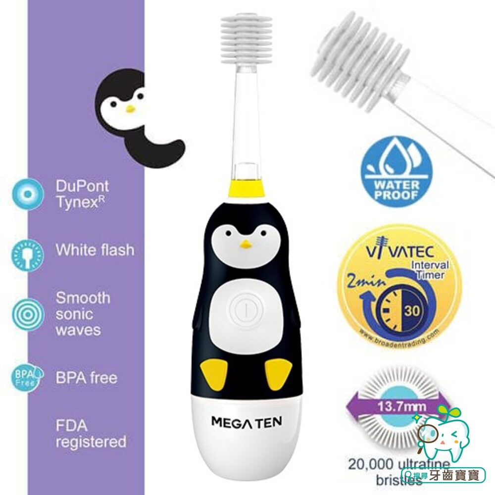 商品名稱:頂級款 Vivatec 創新升級‧5倍清潔力 Mega Ten 360度幼童電動牙刷(企鵝)