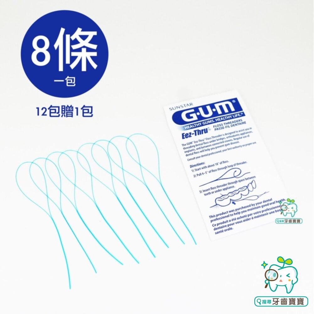 G.U.M牙線穿引器 牙橋穿引線 矯正器使用 可配合V型矯正牙刷 牙套清潔 8入/包