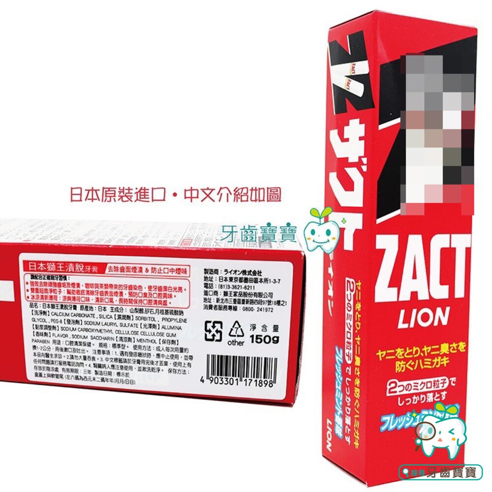 商品名稱:公司貨 日本 Lion 獅王 ZACT 漬脫 牙膏 150g