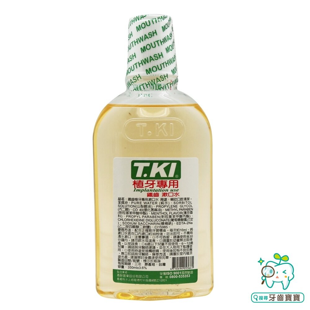 商品名稱:T.KI 鐵齒 植牙專用 蜂膠漱口水350ml 含氯已定Chlorhexidine