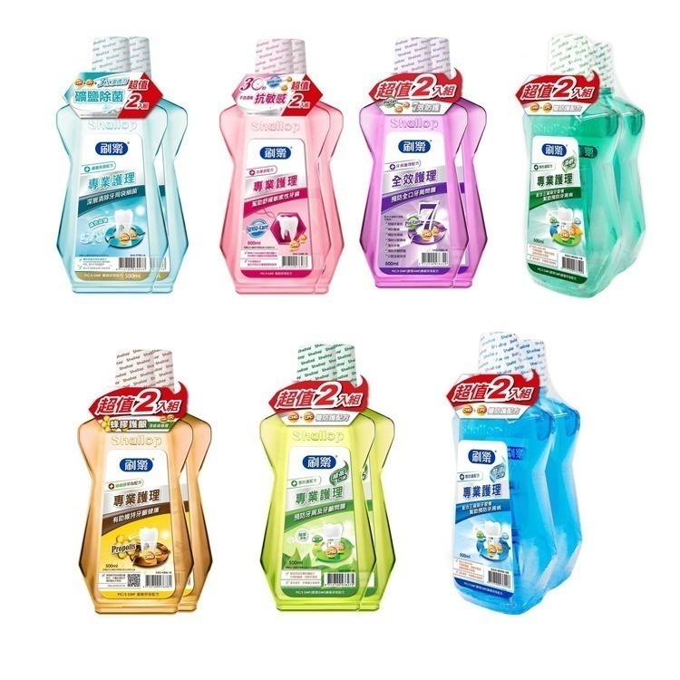 刷樂 八種口味 專業護理漱口水超值組500mlx2-(清新/綠茶/全效/蜂膠/礦鹽/酷涼/草本)