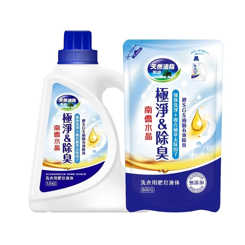 南僑 水晶肥皂 洗衣精 極淨除臭 (瓶裝1.6kg/補充包800g)(藍) (超商一次最多單純2包)