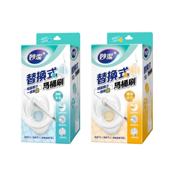 妙潔 替換式馬桶刷(1桿1座14片刷頭)-(橘油去汙/清新潔淨)