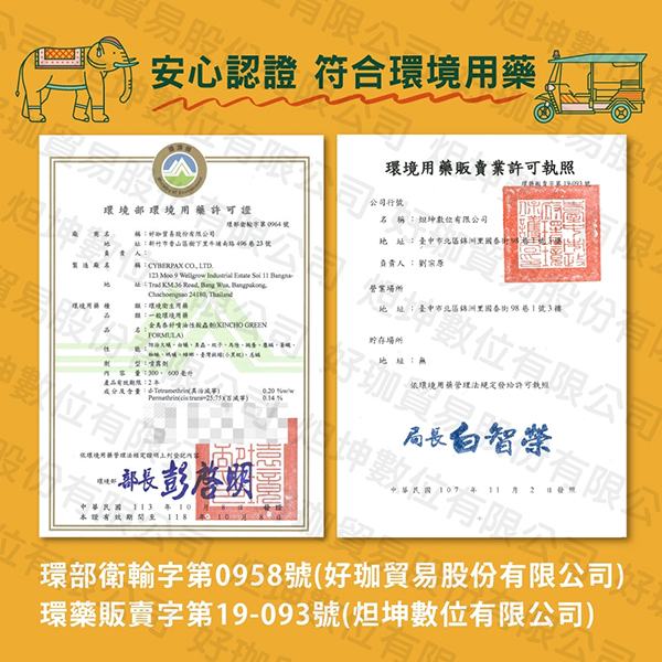 2.合法環境用藥應有環境用藥許可證字號,可至環保署化學局「環境用藥許可證及病媒防治業網路查詢系統」(https://mdc.epa.gov.tw/PublicInfo/)查詢。