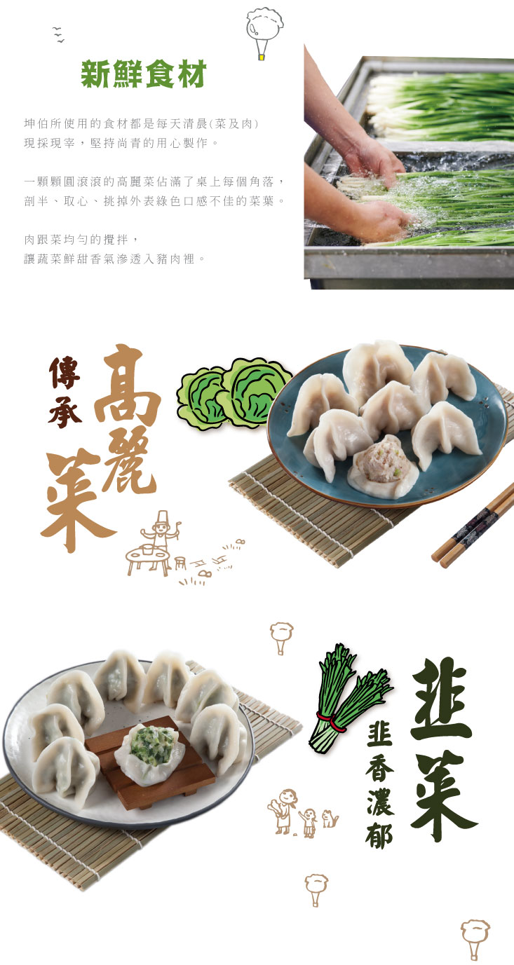 • 高麗菜3包/玉米洋蔥3包 / 韭黃蝦仁4包