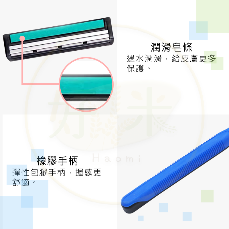 2層刀片, 不鏽鋼刀, 潤滑膠條,橡膠手柄