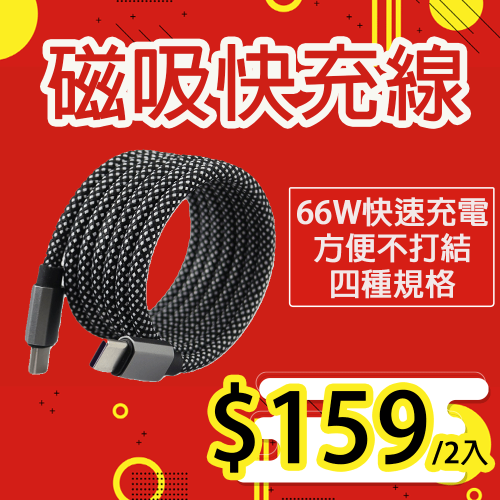 好米 磁吸66W快充線2入組