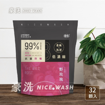 [ 豪洗NICE WASH ] 野玫瑰洗衣凝膠球32顆入/袋