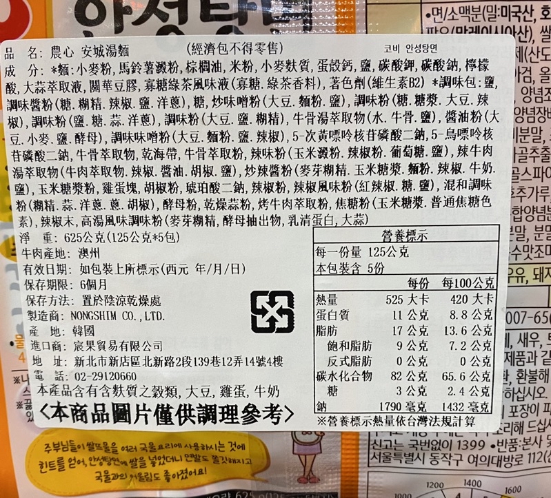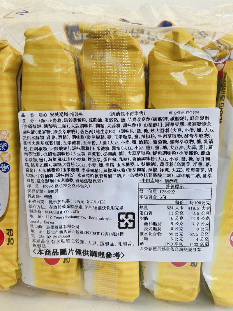 農心 安城湯麵(單包嘗鮮)(5包入/每袋)韓國當地版