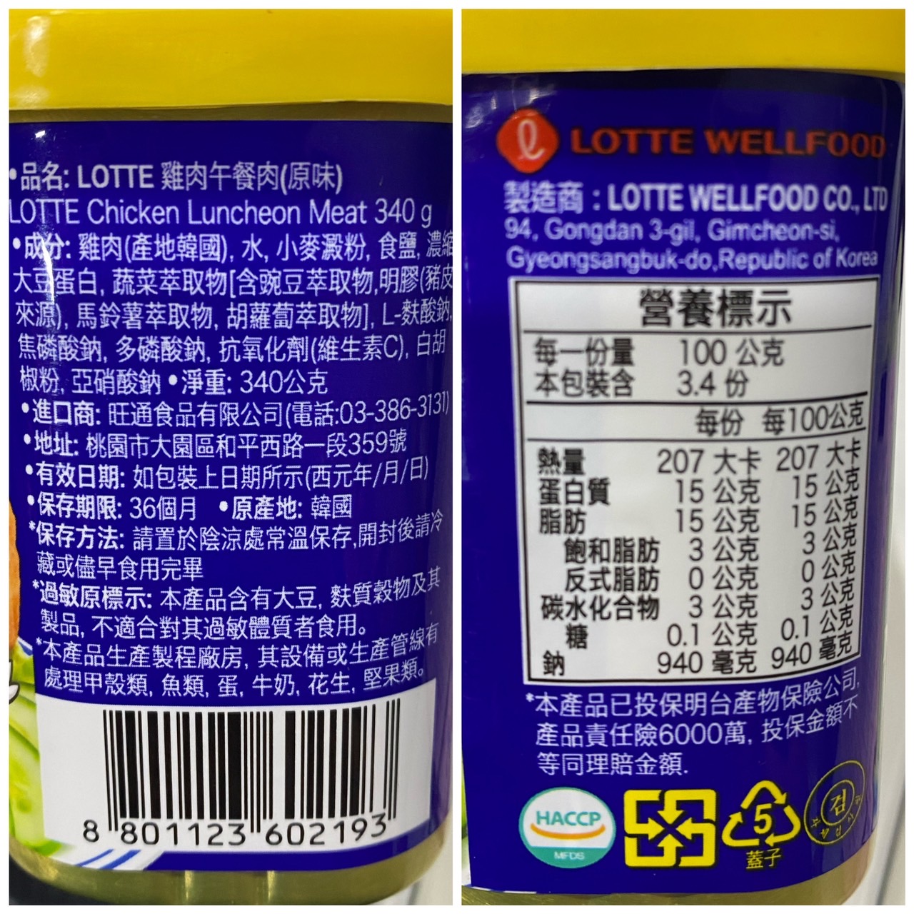 LOTTE雞肉午餐肉 (原味) 340G